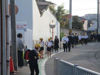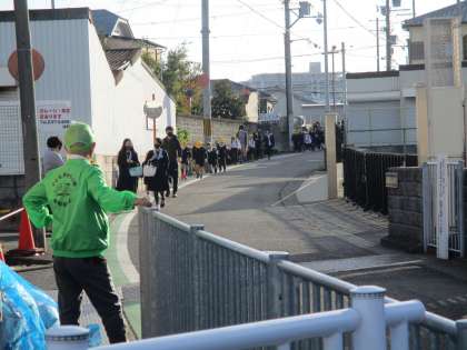 保護者の方にも登校の見守りをしていただいています。ありがとうございます。