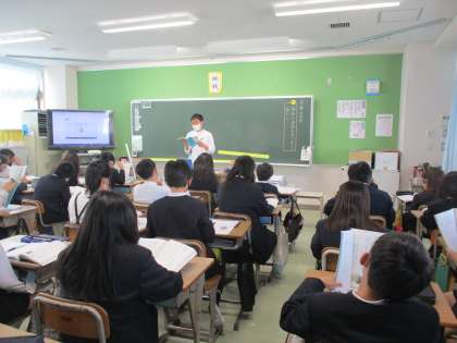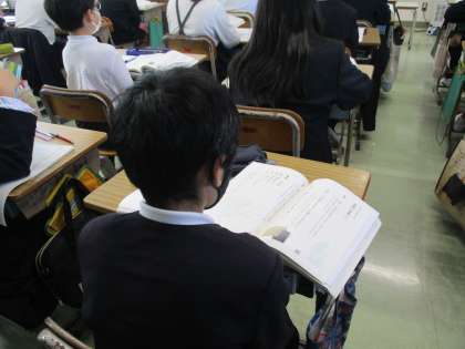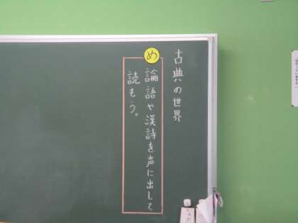 古典の学習です。この時間は,漢詩や論語の有名なフレーズを音読しながら学んでいます。