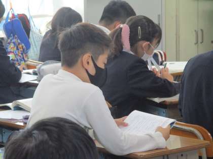 論語の一節を声を出して読んでいます。昔の「寺子屋」ではこんなふうに学んでいたそうです。