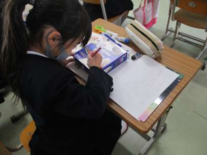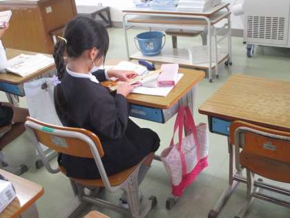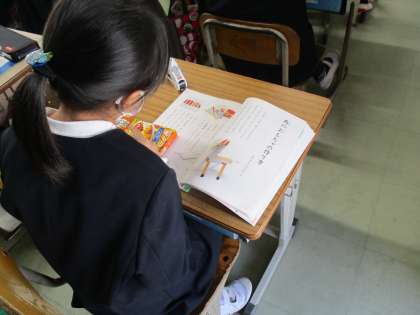 実際に作るということで,みんなしっかり本文を読んでいます。長さを測っている人もいます。