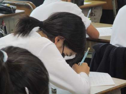 真剣にまとめていました。原稿用紙に鉛筆で文字を書いていく音が響いていました。