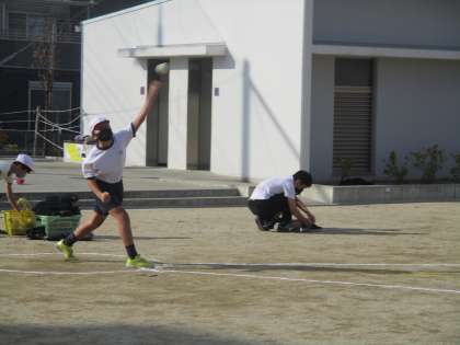 ソフトボール投げのグループです。同じように,はじめの記録を計測しています。