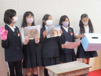 委員会からのお知らせでは,新しく学校にやってきた茶色のうさぎの名前募集の連絡がありました。