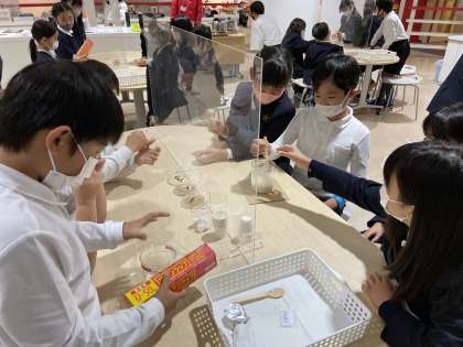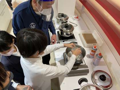 1・2組のお豆腐作り体験が始まりました。 出来上がったものを食べたいなあ。