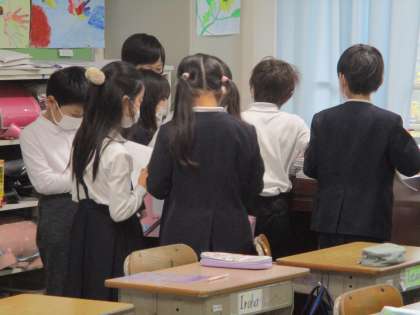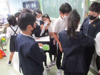 同じ題材を選んだ人同士で情報交換をしています。説明文を書いていくのが楽しみですね。