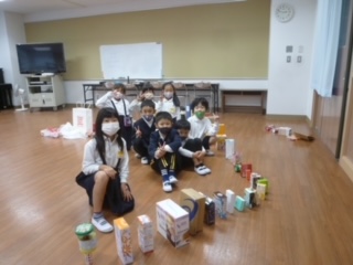 学習後には、持ってきた箱をグループで協力して、いろいろな創作活動を行いました。