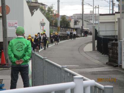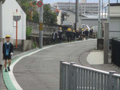 今朝の登校の様子です。冷たい風が吹いて寒い朝です。