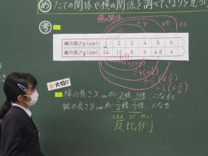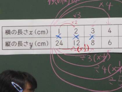 改めて,表の上の数値と下の数値,つまりたてと横をかけると,24という一定の数になることを確かめました。