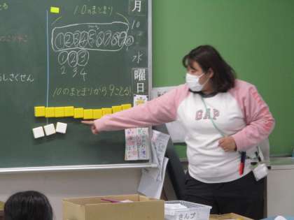 1年3組 算数 くりさがりのあるひき算 3 公開日 2021/11/10 更新日 2021/11/10 1年 13を10と3に分けて,ひく数の9を,10からとる方法です。ブロックを操作してこのやり方を確かめてみます。