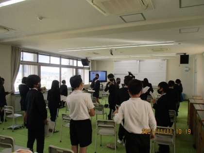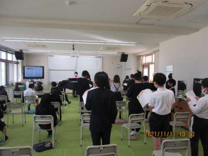 6年2組 音楽 「いのちの歌」 1 公開日 2021/11/11 更新日 2021/11/11 6年 久しぶりの歌の学習です。この歌はずいぶん前に朝ドラで歌われていたものですが,教科書に載っているので驚きました。とてもいい曲です。