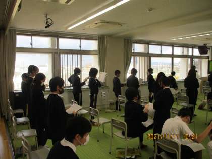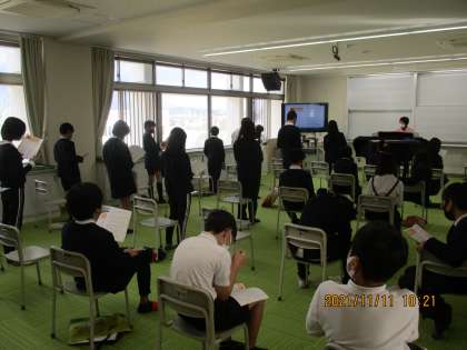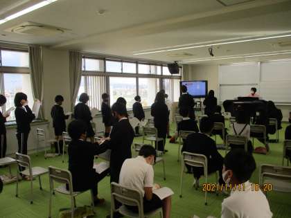 下のパートの練習をしています。旋律がむずかしいですが,がんばっています。