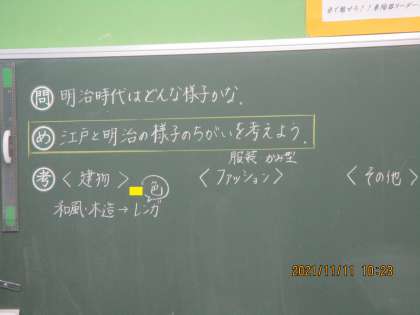 資料(絵)をもとに,江戸時代と明治時代の違いについて考えています。