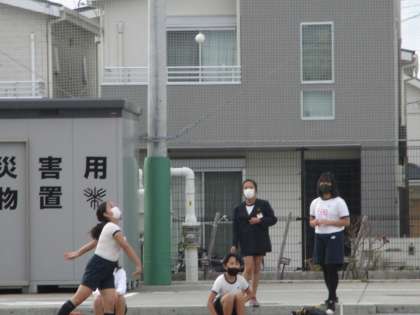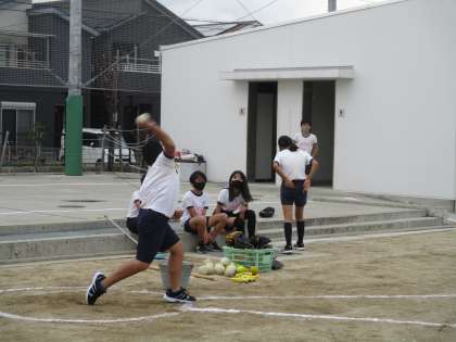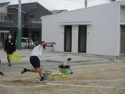 投げる角度も考えて,距離を伸ばそうとしています。
