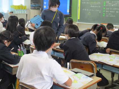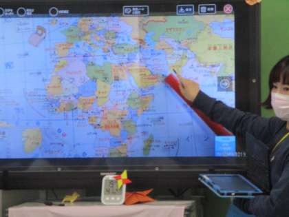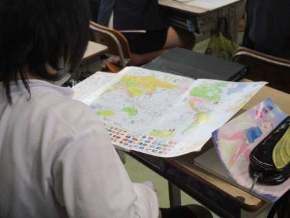サウジアラビアやアラブ首長国連邦などの産油国を,テレビに地図を映して確かめました。