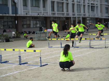 100m走,50mハードル,走り幅跳びの様子です。
