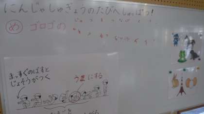 1年4組 体育 公開日 2021/11/15 更新日 2021/11/15 1年 「忍者修行の旅へ出発」と楽しいネーミングです。 子どもたちの気付きを拡大用紙に書き込みながら学習を進めています。 運動するだけではなく,板書を使って子どもたちの学びを整理しています。