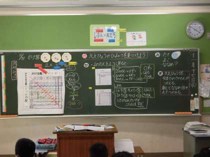 2年2組 算数 「九九のひょう」 公開日 2021/11/17 更新日 2021/11/17 2年 「九九ひょうのひみつをみつけよう」 『たて』・『よこ』・『ななめ』に見て,たくさんのことに気づいていました。