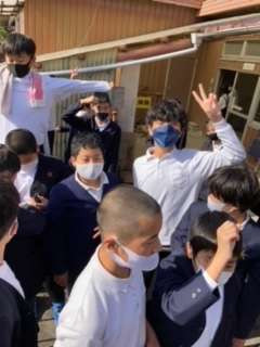 作品を作り終わり外に出ています。