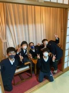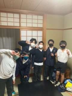 マスクを着けて部屋で楽しんでいます。