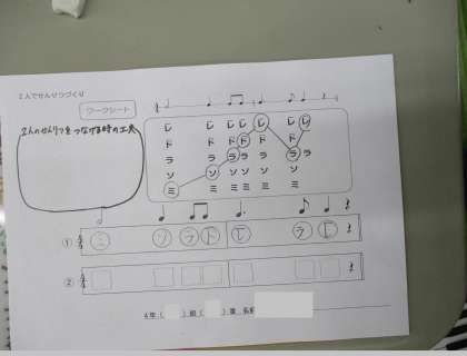 5つの音を使って,旋律を作る学習です。作曲しているということですね!