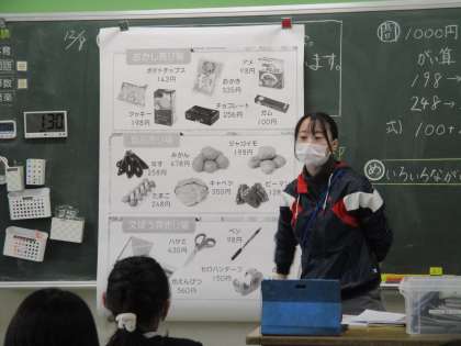 買い物のときなどに,買いたい物がおよそいくらになるのか,見当をつけることが必要になります。まちがいなく概算できるように学習しています。