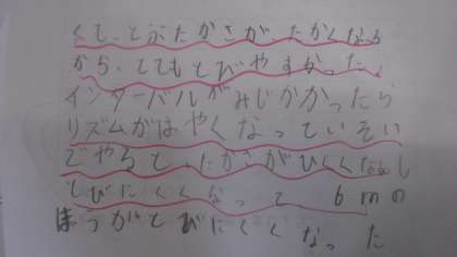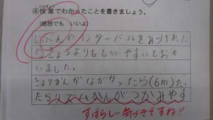 体育の学習カードにも先生の赤ペンが入っています。