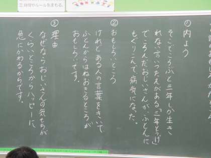 「三年とうげ」の学習を生かして,各自が選んだ民話を紹介する文章を書いています。
