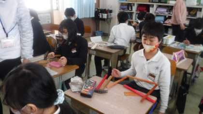 木を自分の考えたように切ったりくっつけたりしています。