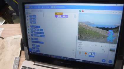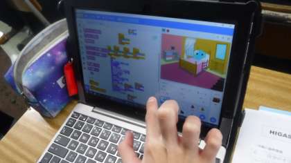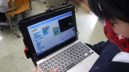 学習用端末を使って,キャラクターを思ったように動かすことができています。