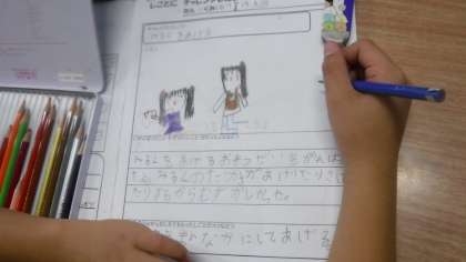 おうちでしたお手伝いを絵をまじえて表しています。 いろいろなお手伝いがありますね。