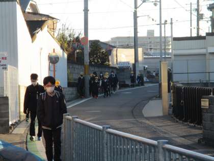 今朝の登校の様子です。風はありませんが,厳しい冷え込みの朝です。