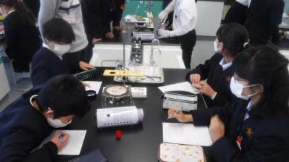 火を使う危険な実験ですが,落ち着いた雰囲気で学習しています。