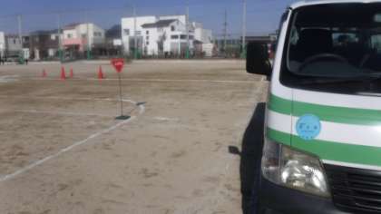 1年生は,運動場で実際に車などを準備し,歩行ルールの確認をしました。