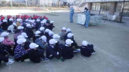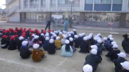 警察の方や担当の方のお話をしっかり聞いている1年生です。