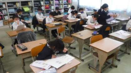 次の時間にテストが行われるため,各自確認をしています。