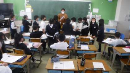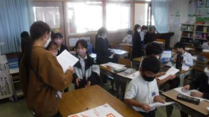 先生が「配ってください」というとたくさんの子がお手伝いに行っていました。