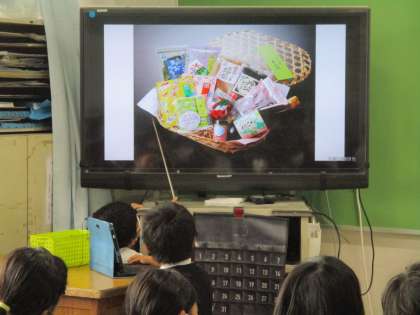 その企業の今の製品や過去のエピソードをしらべて,うまくまとめています。また,発表,PC操作,画面をさすことなど,役割を分担しています。