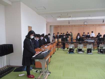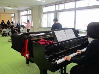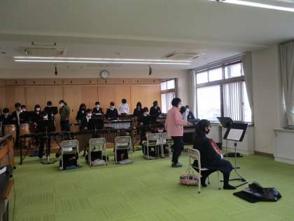 メロディを演奏する楽器のパートに対して,音をしっかり出すように先生から指示がでていました。できあがりが楽しみです。
