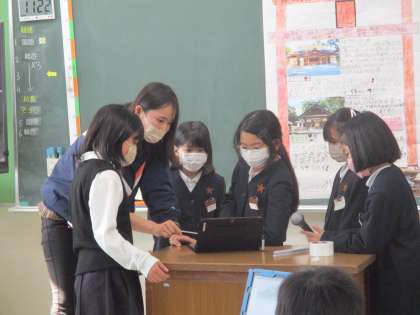 先生からは,「難しい言葉があるので,ゆっくり話すように」との助言がありました。また,テレビ画面の指し方についてもアドバイスを受けていました。