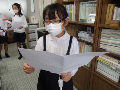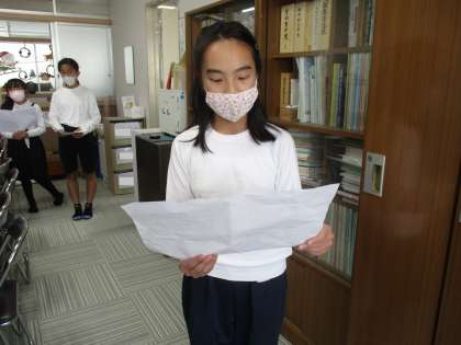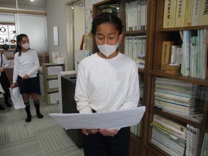 5年生の人たちが,学校生活をよりよくするための意見文を書いて,考えを聞かせてくれました。考えの根拠になるデータや,考えを実現しようとするときに生じる問題をどう乗り越えるのかをきちんと示すなど,とてもしっかり考えていました。