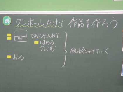 段ボールをいろいろなやり方で組み合わせて,作品をつくります。