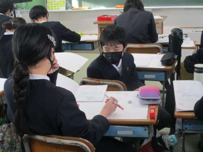 考えがまとまってきたら,先生や近くの仲間と意見交換していました。