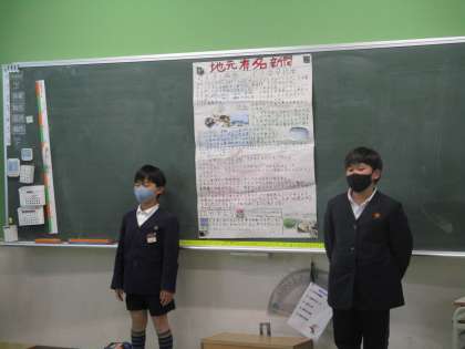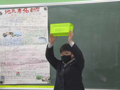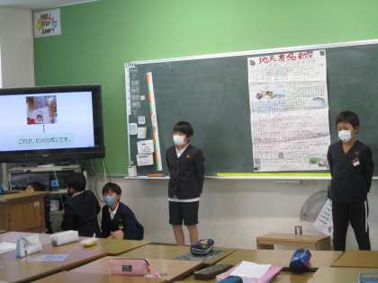 4年のこのクラスでも発表にむけた最終チェックをしていました。みんなが毎日使っているものが,地元の企業で作られていることを説明しています。