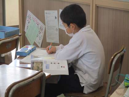ノートに考えをまとめています。