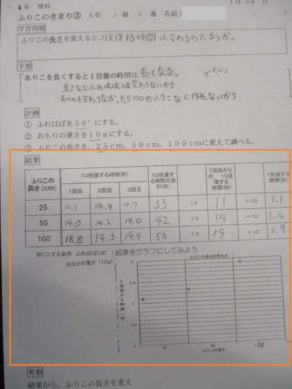 5年3組 理科 ふりこのきまり 4