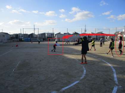 右サイドに走りこんだ味方にパスが通り,シュートができました。