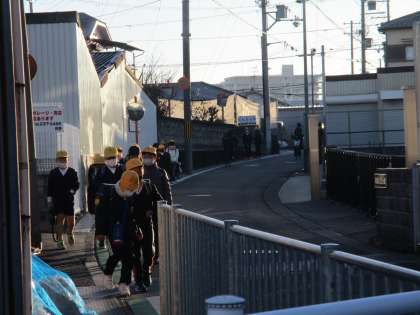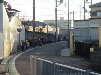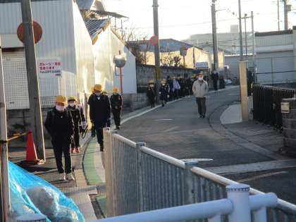 今朝の登校のようすです。冷え込みの厳しい寒い朝です。あちこちに霜が降りていました。