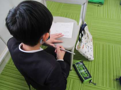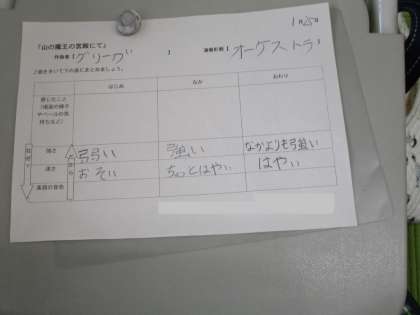 自分がとらえた「強弱」「速度」の変化を,ワークシートに書いています。