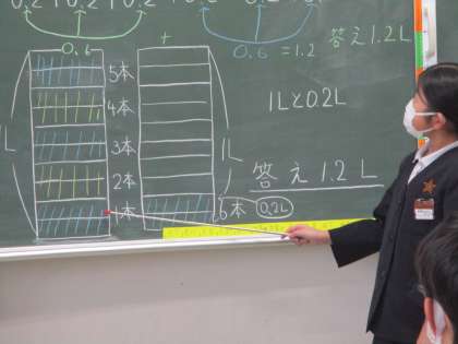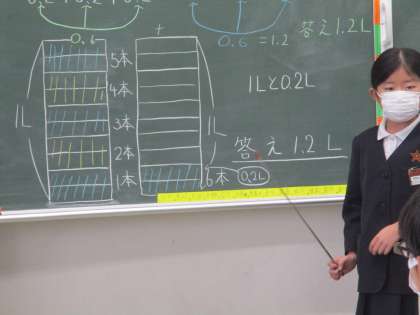 図を使って答えを求めています。答えが1Lと0.2Lで1.2Lになることがよくわかります。
