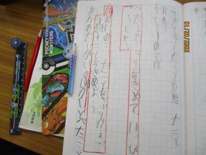長なわ大会で100回跳べたことを話そうと決めたようです。